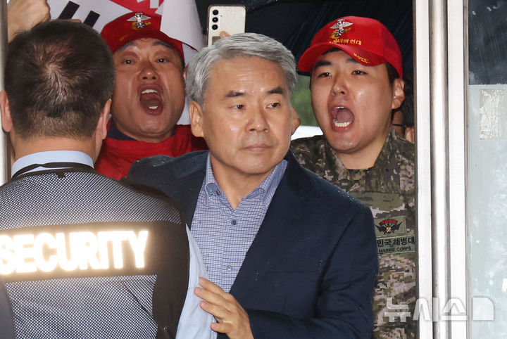 [서울=뉴시스] 홍효식 기자 = 이종섭 전 국방부 장관이 17일 오전 서울 서초구 순직해병 특검 사무실에 참고인 신분으로 조사를 받기 위해 출석하고 있다. 2025.09.17. [email protected]