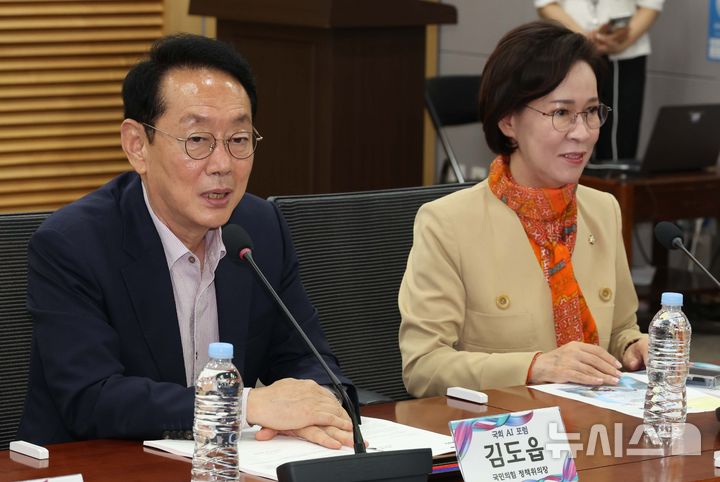[서울=뉴시스] 조성봉 기자 = 김도읍 국민의힘 정책위의장이 17일 오전 서울 여의도 국회 의원회관 세미나실에서 열린 'AI를 활용한 치안정책의 현재와 미래' 국회AI포럼 세미나에서 발언을 하고 있다.오른쪽은 이인선 의원. 2025.09.17. [email protected]