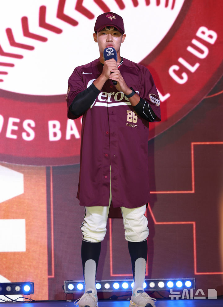 [서울=뉴시스] 황준선 기자 = 17일 오후 서울 송파구 롯데호텔월드에서 열린 2026 KBO 신인 드래프트에서 키움 히어로즈 1라운드 지명된 전주고 박한결이 소감을 밝히고 있다. 2025.09.17. [email protected]
