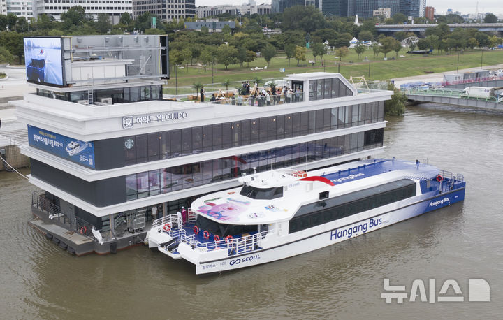 [서울=뉴시스] 김근수 기자 = 한강버스 개통일인 18일 오전 서울 여의도 한강시민공원 한강버스 정류장에서 한강버스가 운항을 준비하고 있다. 2025.09.18. [email protected]