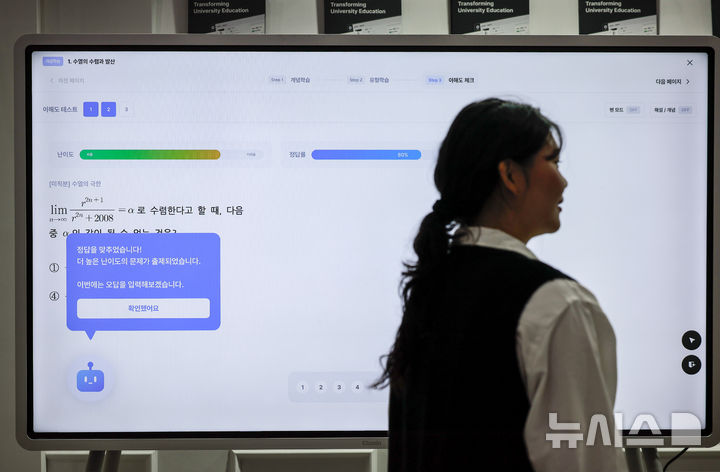 [서울=뉴시스] 정병혁 기자 = 18일 서울 강남구 코엑스에서 열린 에듀테크 코리아 페어에서 참관객들이 학교 맞춤형 수학 AI 코스웨어 스쿨플랫을 살펴보고 있다. 2025.09.18. [email protected]