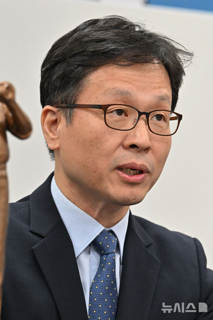 [광주=뉴시스] 이영주 기자 = 최연송 한국영상기자협회장이 18일 오후 광주 서구 5·18기념재단에서 제5회 힌츠페터 국제보도상 수상작 발표 기자회견에 참석해 기념사를 하고 있다. 2025.09.18. [email protected]