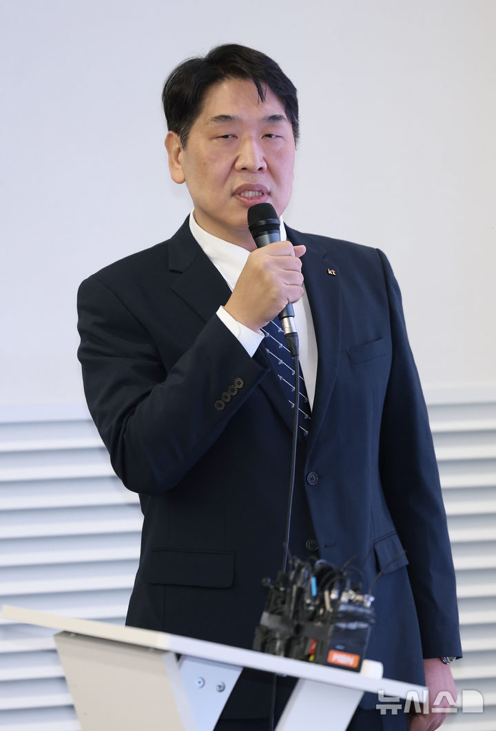 [서울=뉴시스] 김진아 기자 = 구재형 KT 네트워크부문 네트워크기술본부장이 18일 서울 종로구 KT광화문빌딩에서 KT 소액결제 피해 관련 대응 현황 발표 기자회견을 하고 있다. 2025.09.18. [email protected]