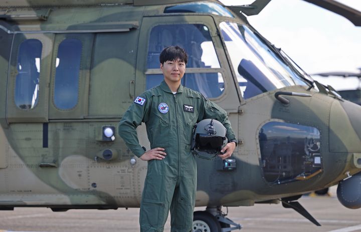 [서울=뉴시스] 육군은 20일 충남 계룡시 '2025 지상군페스티벌' 행사장에서 '수리온 국민 조종사' 임명식을 진행했다. 이번 행사는 수리온 조종사 체험비행을 통해 국민들이 육군의 강인한 힘을 온전히 느낄 수 있게 하기 위해 마련되었다. 사진은 국민 조종사로 임명된 김영호 씨가 수리온 체험비행에 앞서 기념사진을 촬영하는 모습. (사진=육군 제공) 2025.09.20. [email protected] *재판매 및 DB 금지