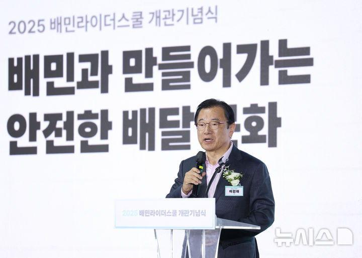 [하남=뉴시스] 김진아 기자 = 이현재 하남시장이 지난19일 경기 하님시 배민라이더스쿨에서 열린 '2025 배민라이더스쿨 개관 기념식'에서 축사를 하고 있다.