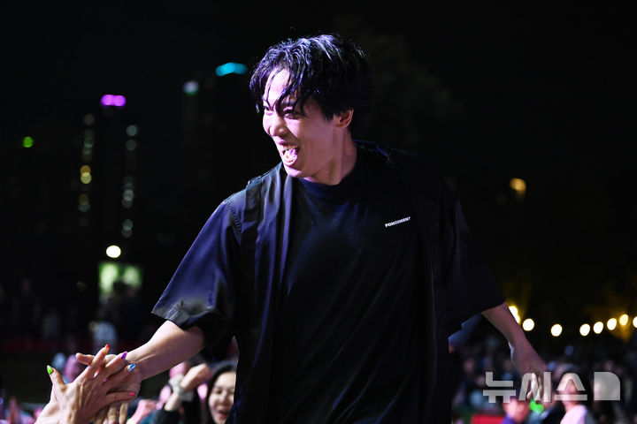 [수원=뉴시스] 김종택 기자 = 2025 수원재즈페스티벌 둘째날인 20일 오후 경기 수원시 광교호수공원 재미난 밭에 마련된 무대에서 힙합 프리스타일 댄서 제이블랙이 열띤 공연을 펼치고 있다. 2025.09.20. [email protected]
