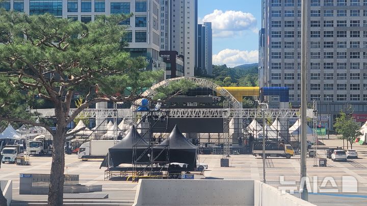 [천안=뉴시스] 최영민 기자=오는 24일부터 28일까지 천안종합운동장에서 열리는 천안흥타령춤축제2025 개막을 앞두고 무대설치 등 준비가 한창이다. 2025.09.21 [email protected]