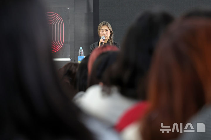 [부산=뉴시스] 박진희 기자 = 매기 강(Maggie Kang) 감독이 21일 부산 해운대구 영화의전당 BIFF 야외무대에서 제30회 부산국제영화제 영화 '케이팝 데몬 헌터스' 오픈토크를 하고 있다. 2025.09.21. [email protected]