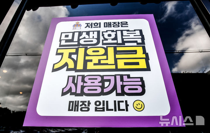 [제주=뉴시스] 우장호 기자 = 민생회복 소비쿠폰 2차 지급 신청 첫날인 22일 오전 제주시 오라동 인근 식당 앞에 민생 회복 지원금 사용가능 안내문이 붙어 있다.