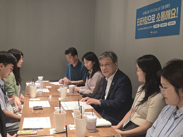[서울=뉴시스] 허민 국가유산청장이 22일 서울 종로구 국립고궁박물관에서 국가유산청 저연차 공무원들과 조직문화 혁신 방안을 논의하고 있다. (사진=국가유산청 제공) 2025.09.22. [email protected] *재판매 및 DB 금지