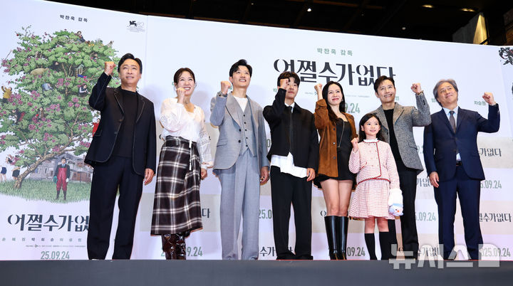 포즈 취하는 영화 '어쩔수가없다' 팀