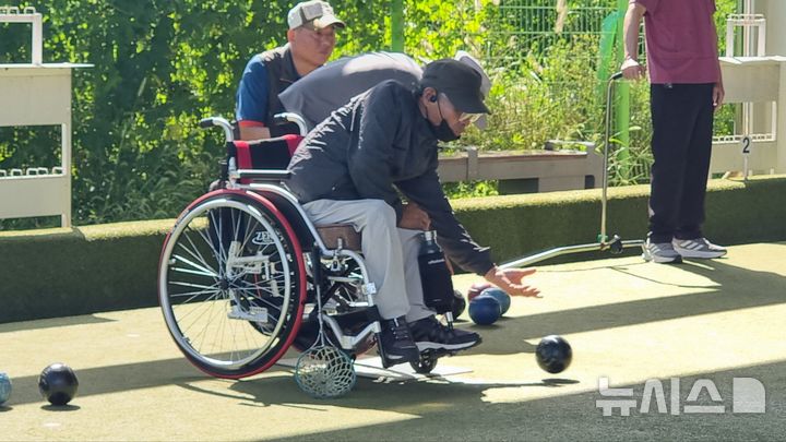 [청주=뉴시스] 23일 충북 청주시장애인스포츠센터 론볼경기장에서 열린 16회 청주시장기 장애인생활체육론볼대회 참가자들이 경기를 치르고 있다. (사진=청주시장애인체육회 제공) 2025.09.23. [email protected]