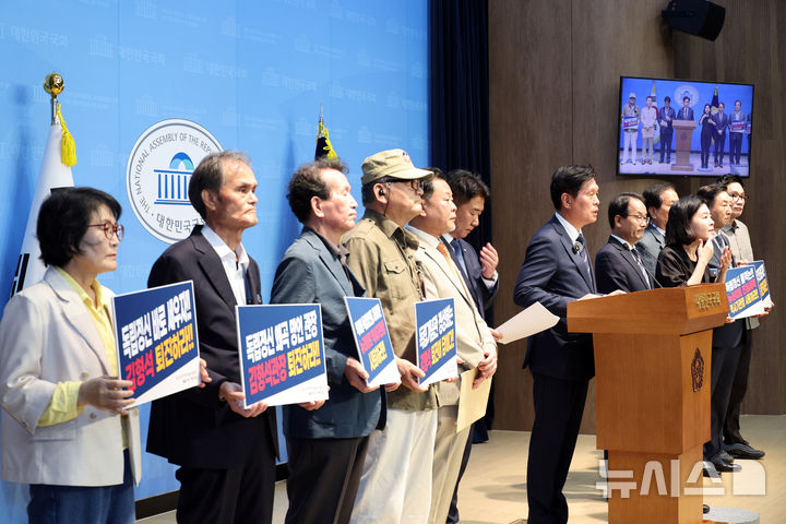 [서울=뉴시스] 김금보 기자 = 조승래 더불어민주당 의원이 23일 오전 서울 여의도 소통관에서 김형석 독립기념관장 사퇴 및 해임 조치 촉구 기자회견을 하고 있다. 2025.09.23. [email protected]