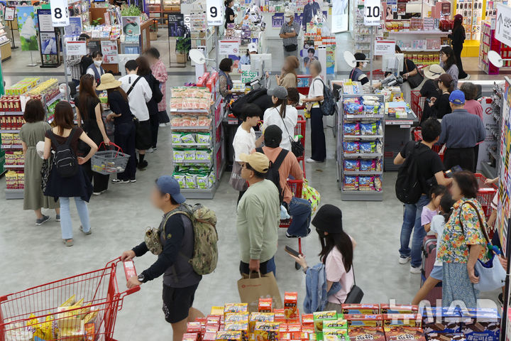 [서울=뉴시스] 조성우 기자 = 지난달 생산자 물가가 석 달 만에 하락 전환한 가운데 23일 서울 시내의 한 대형마트에서 고객들이 장을 보고 있다.