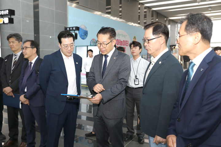 [서울=뉴시스] 김진아 기자 = 김완기 특허청장이 23일 광주 북구 국립광주과학관에서 이정구 국립광주과학관장과 ‘독립과 발명‘ 전시를 관람하고 있다. (사진=특허청 제공) 2025.09.23. [email protected] *재판매 및 DB 금지