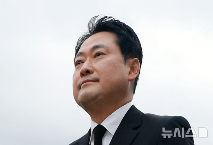 [대전=뉴시스] 고승민 기자 = 장동혁 국민의힘 대표가 24일 대전 유성구 국립대전현충원을 방문, 고 채수근 상병 묘역을 참배하던 중 눈시울을 붉히고 있다. 2025.09.24. [email protected]