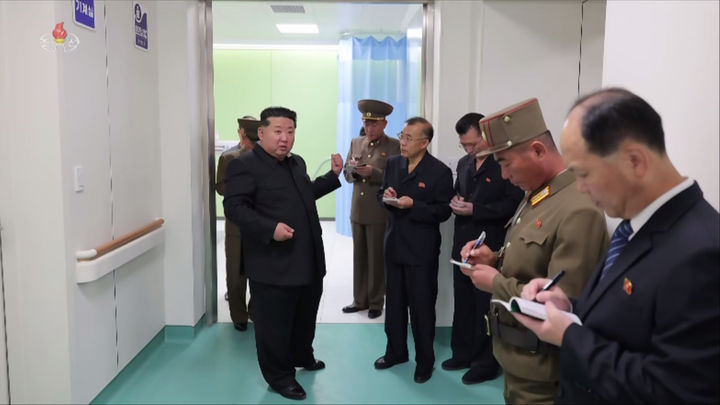 [서울=뉴시스] 김정은 북한 국무위원장이 지난 23일 준공을 앞둔 평양종합병원을 시찰했다고 조선중앙TV가 24일 보도했다. (사진=조선중앙TV 캡처) 2025.09.24. [email protected] *재판매 및 DB 금지