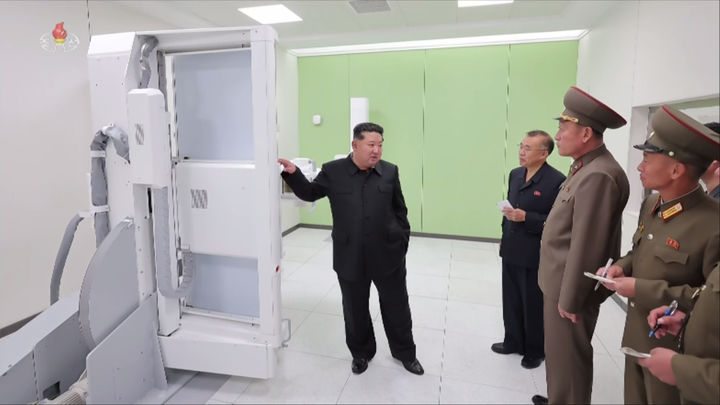 [서울=뉴시스] 김정은 북한 국무위원장이 지난 23일 준공을 앞둔 평양종합병원을 시찰했다고 조선중앙TV가 24일 보도했다. (사진=조선중앙TV 캡처) 2025.09.24. [email protected] *재판매 및 DB 금지