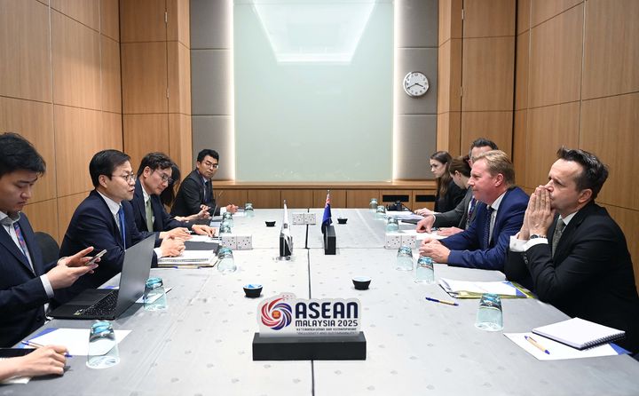 [서울=뉴시스] 여한구 산업통상자원부 통상교섭본부장은 24일(현지시각) 말레이시아 쿠알라쿰푸르 국제컨벤션센터에서 ‘2025 아세안 경제장관회의’참석 계기에 토드 맥클레이(Todd McClay) 뉴질랜드 외교통상부 통상·투자 장관과 면담을 갖고, 양국 간 통상협력 방안을 논의하였다.(사진=산업통상자원부 제공). 2025.09.24. [email protected] *재판매 및 DB 금지