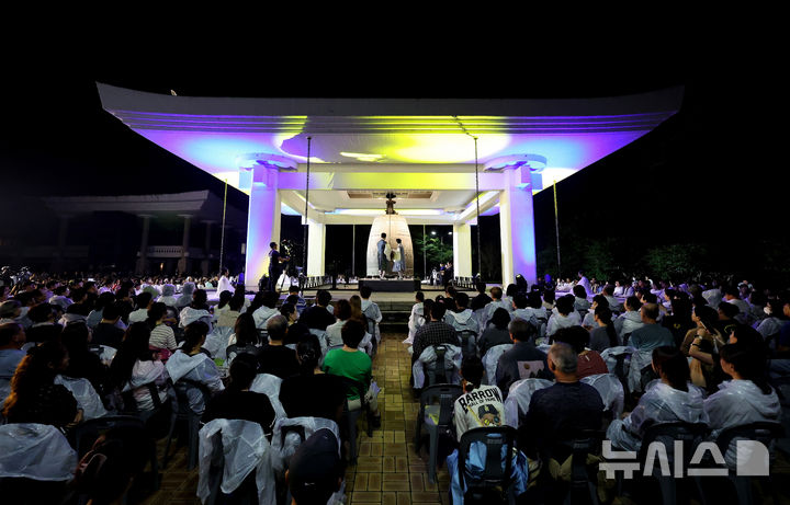 [경주=뉴시스] 이무열 기자 = 24일 경북 경주시 국립경주박물관에서 열린 ‘2025 성덕대왕신종 타음조사 공개회’에서 타종이 진행되고 있다.