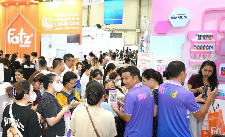 [서울=뉴시스] 코엑스는 오는 28일까지 베트남 하노이 국제 컨벤션 센터에서 '2025 하노이 국제 베이비&키즈페어'를 진행한다고 25일 밝혔다. 사진은 현지 바이어와 참관객이 전시회를 관람하는 모습. (사진=코엑스 제공) 2025.09.25. [email protected] *재판매 및 DB 금지