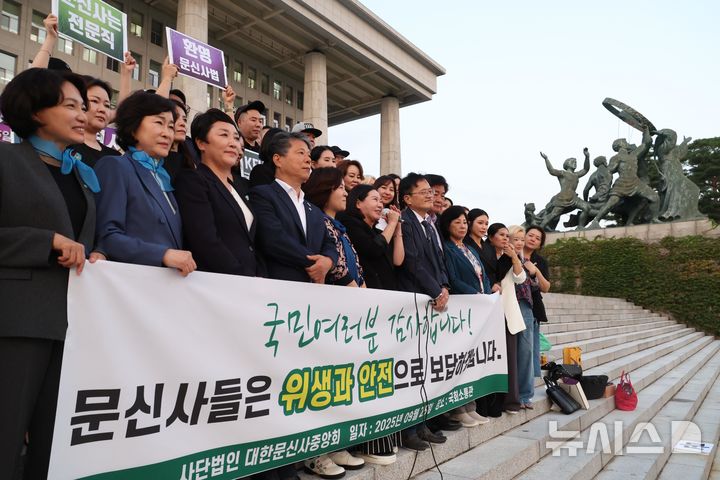 [서울=뉴시스] 조성봉 기자 = 임보란 대한문신사중앙회 회장이 25일 서울 여의도 국회 본청 계단에서 열린 문신사법 본회의 통과 관련 기자회견에서 발언을 하고 있다. 2025.09.25. [email protected]