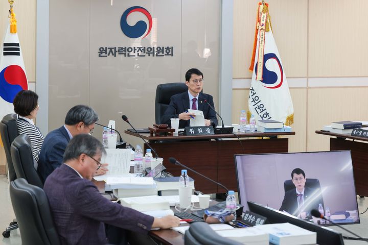 [서울=뉴시스] 최진석 기자 = 최원호 원자력안전위원회 위원장이 25일 서울 중구 원자력안전위원회 대회의실에서 열린 제222회 원자력안전위원회 회의에서 위원들과 안건에 대해 논의하고 있다. (사진=원자력안전위원회 제공) 2025.09.25. [email protected] *재판매 및 DB 금지