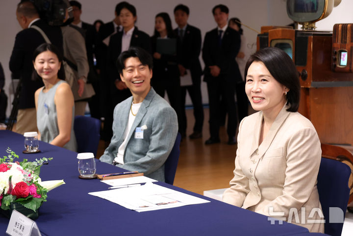 [뉴욕=뉴시스] 최동준 기자 = 김혜경 여사가 25일(현지 시간) 미국 뉴욕한국문화원에서 열린 차세대 예술가 간담회에서 발언하고 있다. 2025.09.26. [email protected]