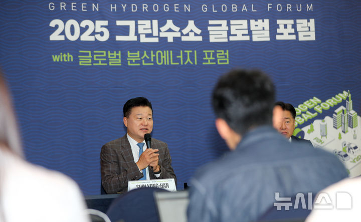 [서귀포=뉴시스] 우장호 기자 = 신용한 지방시대위원회 부위원장이 26일 오전 제주 서귀포시 제주국제컨벤션센터에서 열린 '2025 그린수소 글로벌 포럼' 산업부 출입기자단 인터뷰에서 답변하고 있다. 2025.09.26. [email protected]