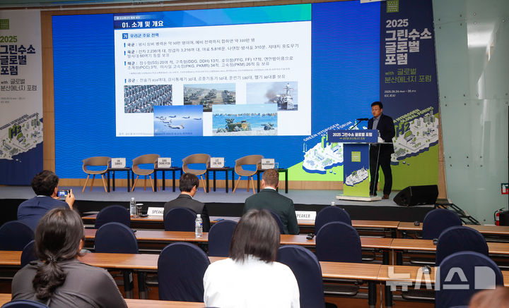 [서귀포=뉴시스] 우장호 기자 = 26일 오후 제주 서귀포시 제주국제컨벤션센터 삼다홀에서 열린 '2025 그린수소 글로벌 포럼'에서 '탄소중립 교통의 미래,수소 모빌리티' 세션이 진행되고 있다. 2025.09.26. [email protected]