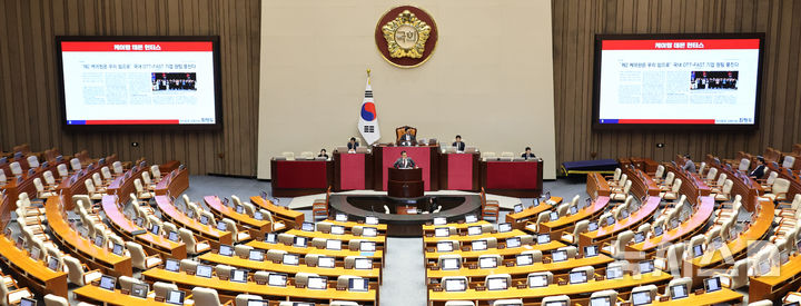 [서울=뉴시스] 김금보 기자 = 최형두 국회 과학기술정보방송통신위원회 국민의힘 간사가 26일 오후 서울 여의도 국회에서 열린 본회의에서 방송미디어통신위원회의 설치 및 운영에 관한 법률안(대안)에 대한 반대 무제한토론 발언을 하고 있다. 2025.09.26. [email protected]