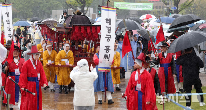 궂은날씨에 약식으로 진행된 정조대왕 능행차 공동재현