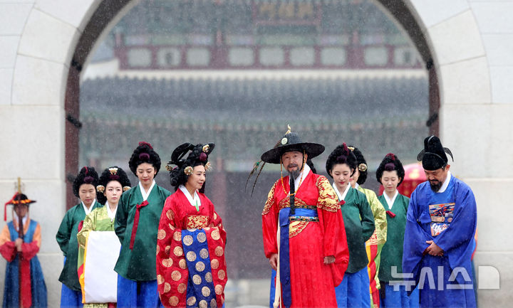 [서울=뉴시스] 추상철 기자 = 28일 오전 서울 종로구 광화문 앞에서 '2025 정조대왕 능행차 공동재현' 행사가 열리고 있다.