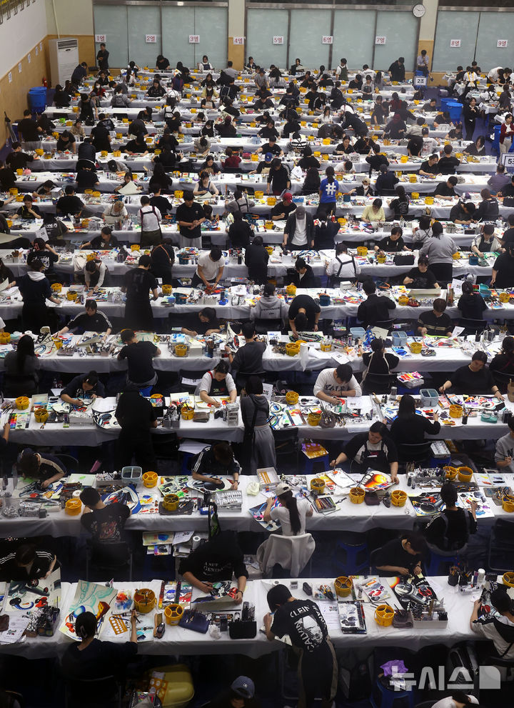 [서울=뉴시스] 박주성 기자 = 28일 서울 노원구 삼육대학교 체육관에서 열린 '2026학년도 수시모집 미술 실기고사'에서 수험생들이 실기고사를 치르고 있다. 2025.09.28. [email protected]