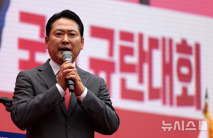 [서울=뉴시스] 김명년 기자 = 장동혁 국민의힘 대표가 28일 오후 서울 중구 대한문 앞에서 열린 사법파괴 입법독재 국민 규탄대회에서 연설을 하고 있다. 2025.09.28. [email protected]