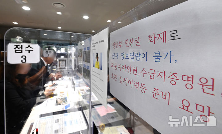 [수원=뉴시스] 김종택 기자 = 국가정보자원관리원(국정자원) 전산실 화재로 온라인 복지 서비스, 정부24 등 주요 업무시스템이 중단된 29일 경기 수원시 승화원에 관련 안내문이 붙어 있다. 2025.09.29. [email protected]