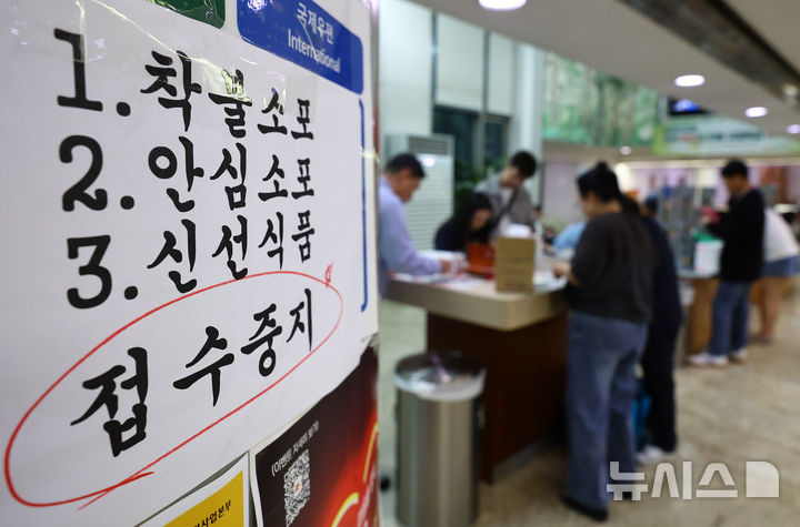 현재 우체국에서 착불소포, 안심소포, 신선식품 소포, 미국행 EMS(비서류), 수입인지·알뜰폰 같은 수탁상품 접수는 불가능 하다. 2025.09.29. [email protected]