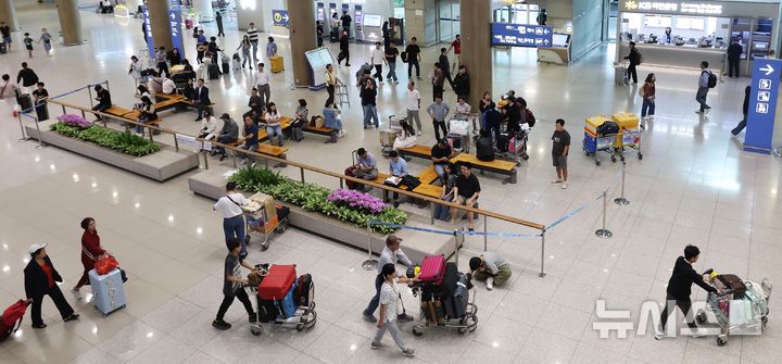 [인천공항=뉴시스] 박주성 기자 = 중국 단체관광객의 무비자 입국이 시작된 29일 중국인 관광객들이 인천국제공항 1터미널을 통해 입국하고 있다. (공동취재) 2025.09.29. [email protected]