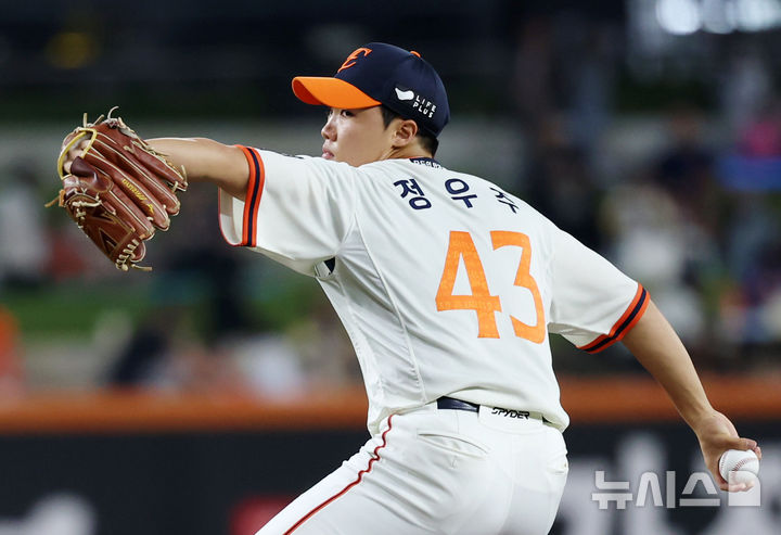 [대전=뉴시스] 조성우 기자 = 29일 대전 중구 한화생명볼파크에서 열린 2025 KBO리그 LG 트윈스와 한화 이글스의 경기, 한화 선발투수 정우주가 역투하고 있다. 2025.09.29. [email protected]