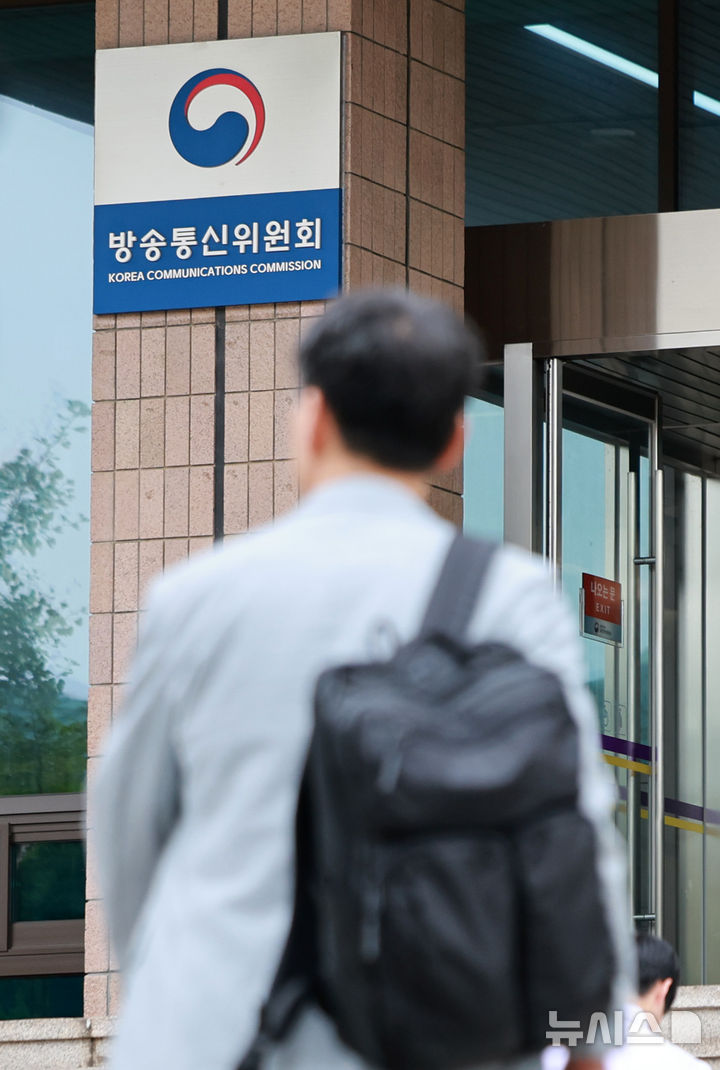 [과천=뉴시스] 이영환 기자 = 30일 오전 경기 과천시 방송통신위원회 청사의 현판이 보이고 있다.