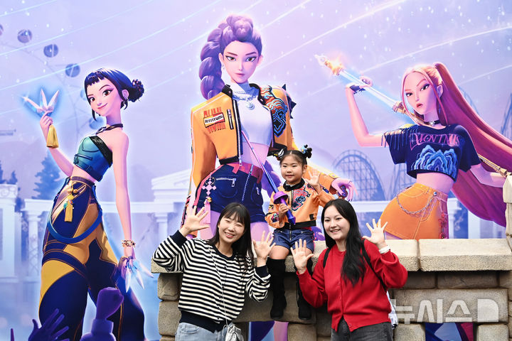 [용인=뉴시스] 김종택 기자 = 30일 경기 용인시 에버랜드에서 관람객들이 ‘케이팝 데몬 헌터스’(케데헌) 테마존을 체험하고 있다.