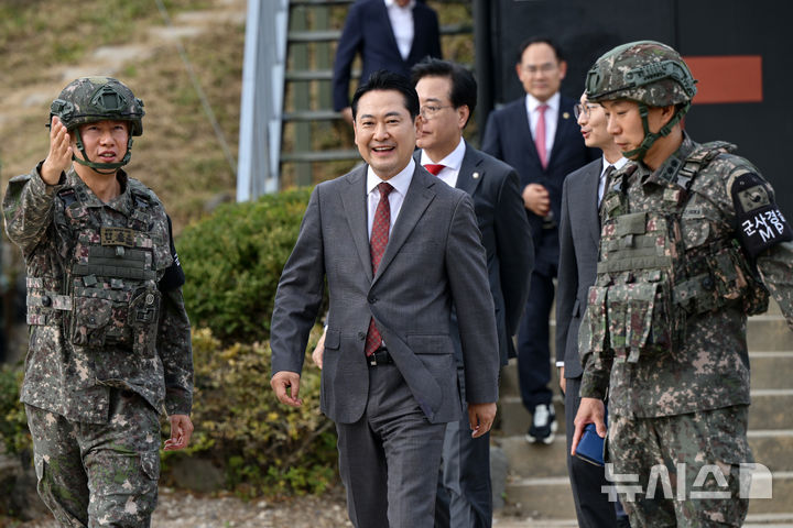 [서울=뉴시스] 국회사진기자단= 장동혁 국민의힘 대표가 국군의 날을 하루 앞둔 30일 경기 포천시 육군 제6보병사단 2여단 GOP대대를 방문해 군사대비 태세를 점검하고 있다. 2025.09.30. [email protected]