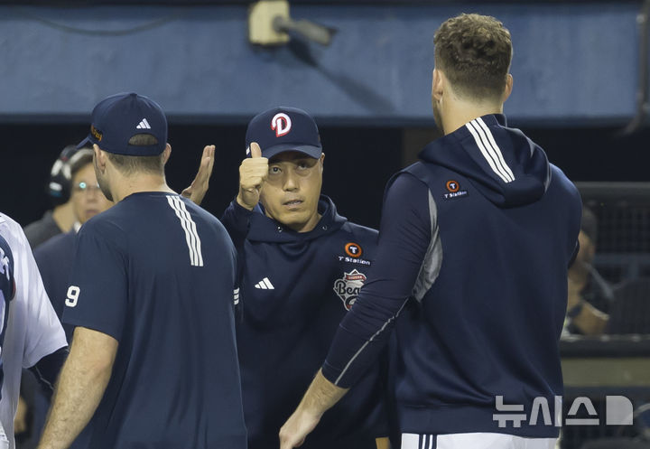조성환 두산 베어스 감독 대행이 선발 투수 콜어빈에게 엄지를 들어보이고 있다. 2025.09.30. [email protected]