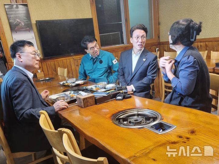 [청주=뉴시스] 서주영 기자 = 김민석 국무총리가 1일 천원아침백반 식당 격려를 위해 청주시의 만나김치식당을 찾아 아침을 먹고 있다. (사진= 독자 제공) 2025.10.01. [email protected]