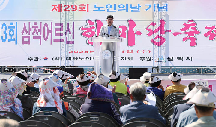 [삼척=뉴시스] 홍춘봉 기자= 제29회 노인의 날을 맞아 제3회 삼척어르신 한마당 축제 행사가 1일 강원 삼척종합운동장에서 대한노인회 삼척시지회 주관으로 열리고 있다. (사진=삼척시 제공) 2025.10.01. [email protected] *재판매 및 DB 금지