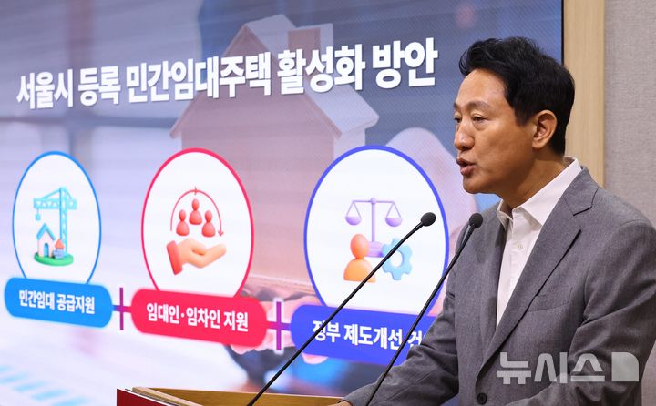 [서울=뉴시스] 최진석 기자 = 오세훈 서울시장이 1일 서울 중구 서울시청 브리핑룸에서 열린 등록 민간임대주택 활성화 기자설명회에서 발언하고 있다. 2025.10.01. [email protected]