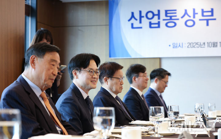 [서울=뉴시스] 황준선 기자 = 김정관 산업통상부 장관이 1일 오후 서울 중구 프레스센터에서 열린 산업통상부 역대장관 초청 간담회에서 인사말을 하고 있다. 2025.10.01. [email protected]