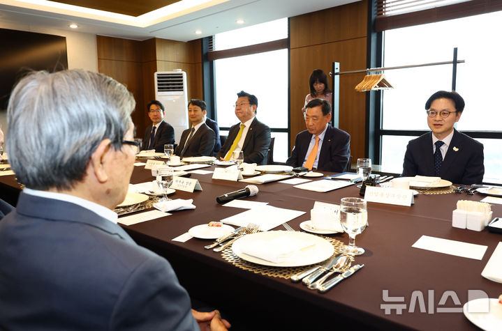 역대 장관들과 간담회 갖는 김정관 산업부 장관