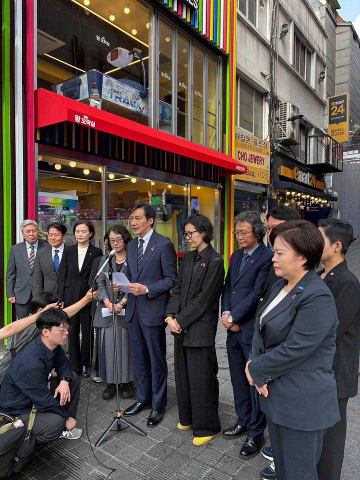 [서울=뉴시스] 조성봉 기자 = 조국 조국혁신당 비상대책위원장이 1일 서울 용산구 이태원 '10·29 기억과 안전의 길'에서 헌화를 마치고 발언을 하고 있다.(사진=조국혁신당 제공) 2025.10.01. [email protected] *재판매 및 DB 금지