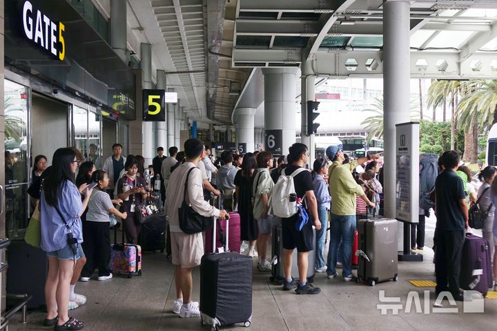 [제주=뉴시스] 양영전 기자 = 추석 연휴 첫날인 3일 오후 제주국제공항 1층 도착장이 입도객들로 붐비고 있다. 2025.10.03. [email protected]